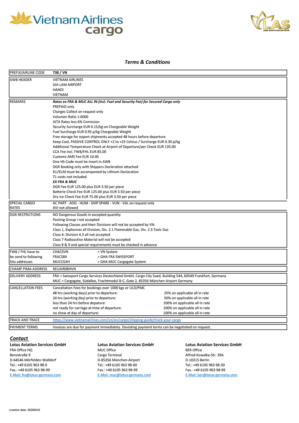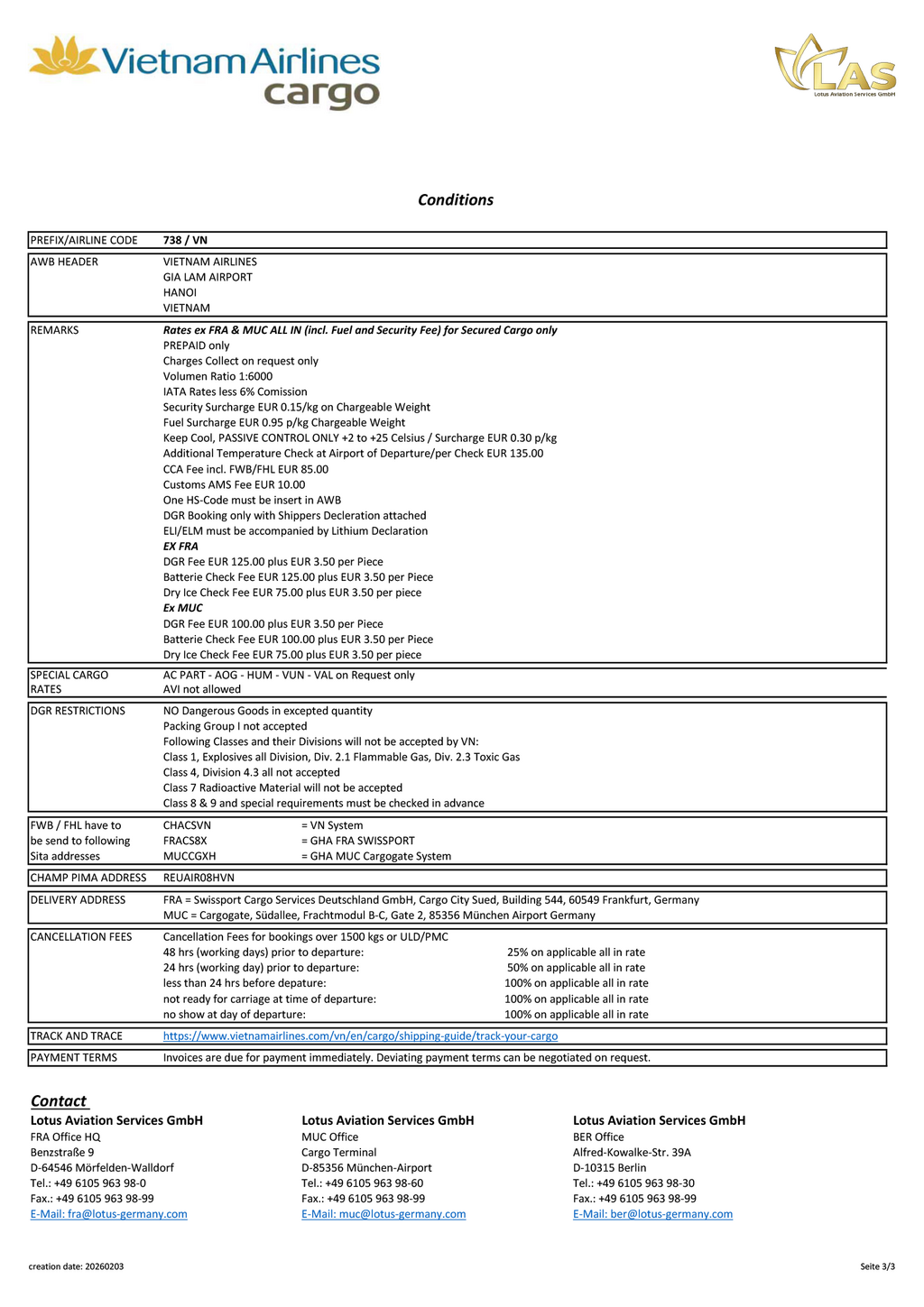 Außerdem stellen wir Ihnen alle Informationen rund um unsere Offline-Anlieferstellen für Ihre Frachtplanung zur Verfügung. Beide Tabellen werden laufend aktualisiert und unterstützen Sie bei der effizienten Organisation Ihrer Luftfracht nach Vietnam und darüber hinaus.